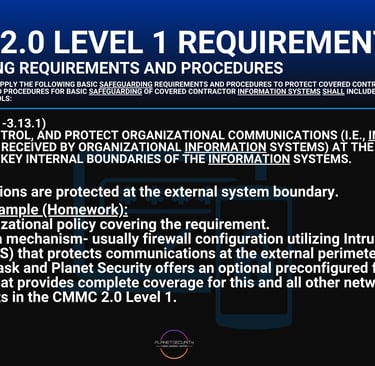 • Free Level 1 Assessment is a product of Planet Security Inc. - The Nationwide Leader in CMMC Remediation!"